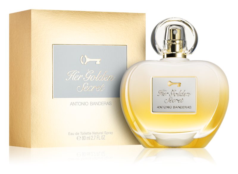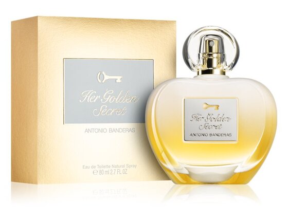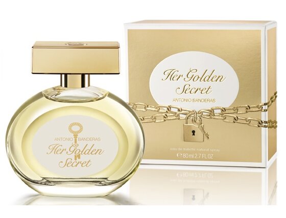 Az Antonio Banderas Her Golden illatában csábító gyümölcsös színezetek terjednek, melyeknek az őszibarack, az alma, a bergamott és a mandarin dominálják. A szív gardénia és narancsvirág virágával nyílik, amit a fekete ribizli cseppjei frissítenek. A luxus érintését a mámorító pacsuli, vanília, cédrus és pézsma hozza a illatba.