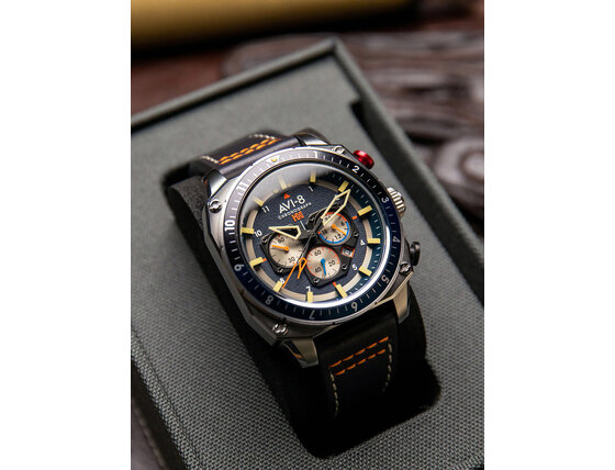Ne habozzon és ékesítse stílusát a AVI-8 AV-4100-02 Mens Watch Hawker Hunter Dual Time Chronograph 43mm 5ATM karórával.