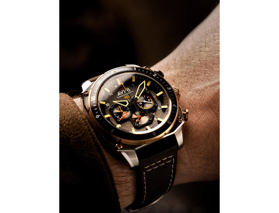 Ne habozzon és ékesítse stílusát a AVI-8 AV-4100-05 Mens Watch Hawker Hunter Dual Time Chronograph 43mm 5ATM karórával.