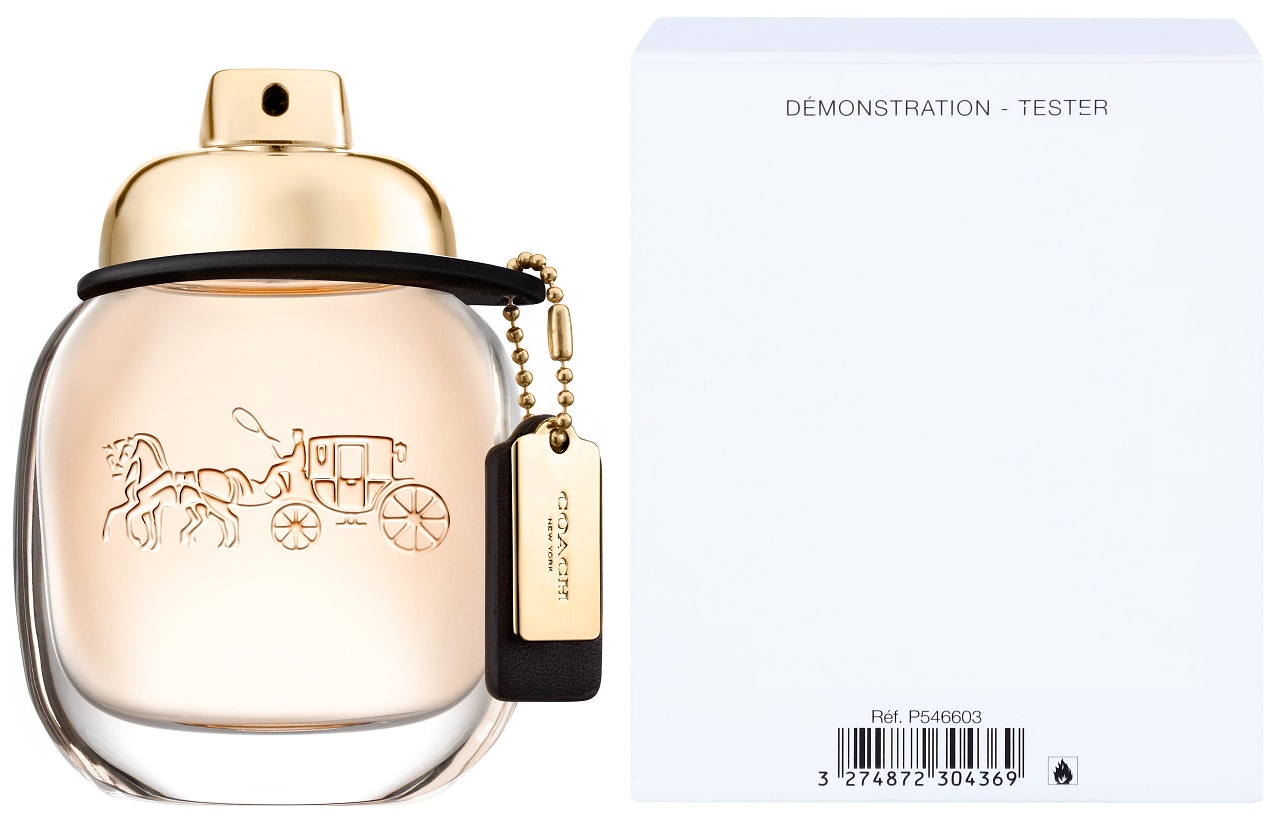 Kobiecy, zmysłowy, ciężki flakon o owalnym kształcie, tak charakterystycznym dla marki Coach. Złoty kork przypomina zamek obrotowy, stosowany w najsłynniejszych jej torebkach. Rozpoznawalna na całym świecie skórzana zawieszka w kolorze czarnym z metalowymi elementami decyduje o elegancji i wysokiej jakości wykończenia, koń zaprzężony do trójkołowej bryczki - nieodłączny symbol rzemieślniczej doskonałości marki Coach, jest wygrawerowany na szklanym flakonie.