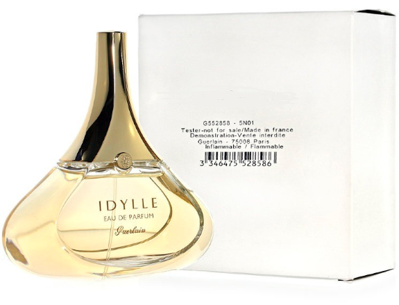 A Guerlain női parfümje a találóan Idylle névvel már első pillantásra lenyűgöz a modern csepp formájú, érzéki üvegével. Az illat első szippantása egy varázslatosan könnyű, romantikus illatot kínál, amely gyengédségével simogat és kecsességével csábít. A legritkább virágok - bolgár rózsa, licsi és málna jegyeivel, Plessis Robinson rózsa, Jean-Paul Guerlain saját alkotása, kombinálva a márka jellegzetes chypre jegyeivel, és végül a gyöngyvirág, lila, frézia, jázmin és bazsarózsa - alkotja.