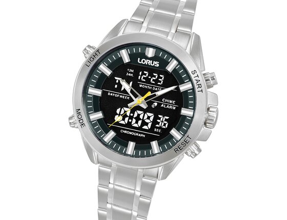 Ne habozzon és ékesítse stílusát a Lorus RW663AX9 Mens Watch Analog-Digital Alarm Chronograph 45mm 10ATM karórával.
