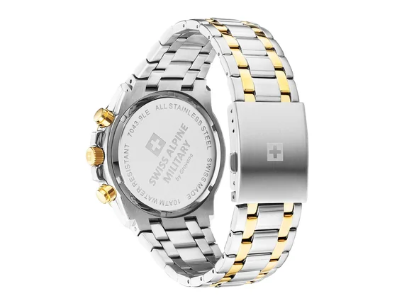 A férfi Swiss Alpine Military 7043.9147 Star Fighter Chronograph Mens Watch 47mm 10ATM karóra stílusos eleganciával ruházza fel és kiemeli az egyéniségét. A Swiss Alpine Military műhelyéből származó minőségi kivitelezésnek köszönhetően nem kell félnie a melléfogástól.