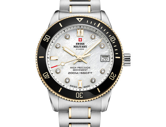 A női Swiss Military SM34089.04 Diver Ladies Watch 37mm 20ATM karóra stílusos eleganciával ruházza fel és kiemeli az egyéniségét. A Swiss Military műhelyéből származó minőségi kivitelezésnek köszönhetően nem kell félnie a melléfogástól.