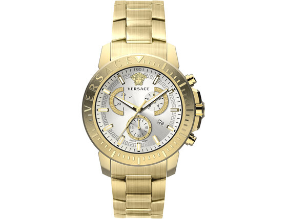 Versace VE2E00521 New Chronograph Mens Watch 45mm 5ATM karóra stílusos eleganciával ruházza fel és kiemeli az egyéniségét. A Versace műhelyéből származó minőségi kivitelezésnek köszönhetően nem kell félnie a melléfogástól.